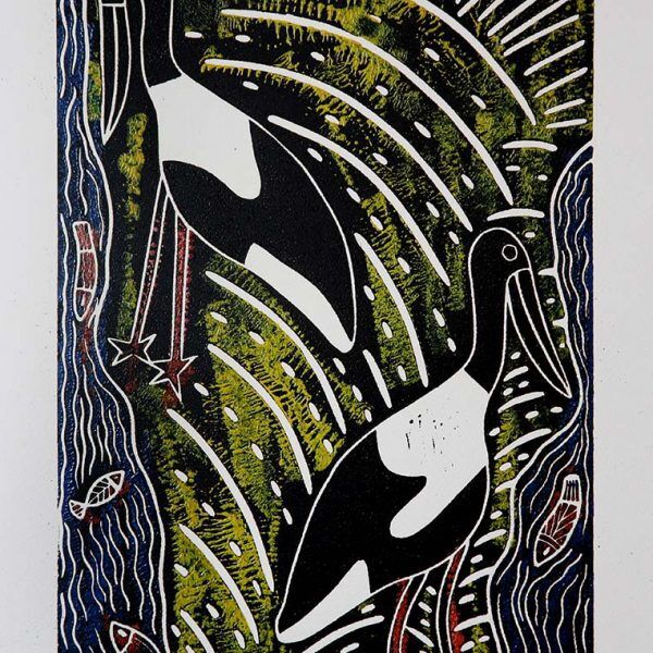 Sunlight breaks in on the jabiru and fish. The jabiru or black-necked stork is Australia’s only stork and lives along the rivers, swamps and estuaries feeding in the shallow wetlands. It has a shiny green- black head and neck, black wings, a large bill and bright red legs. This is an elegant bird and stately bird. I never tire of watching them.